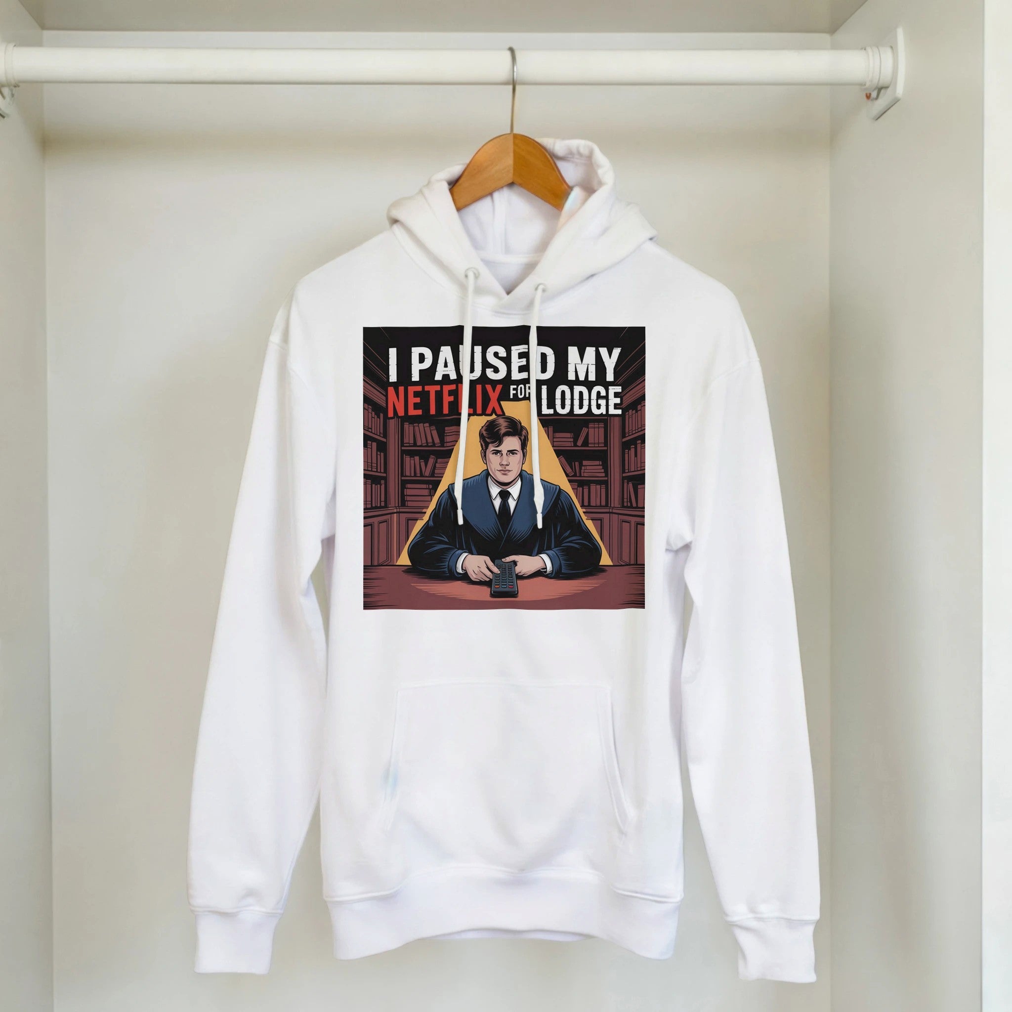 When the summons calls, Netflix waits. This hoodie says what every Mason's partner already knows. A lighthearted gift for the Brother whose lodge attendance record speaks for itself.